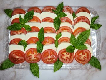 12' round tray. Serves 4 to 6 people. 3 Cheeses and 2 Meats