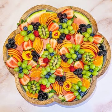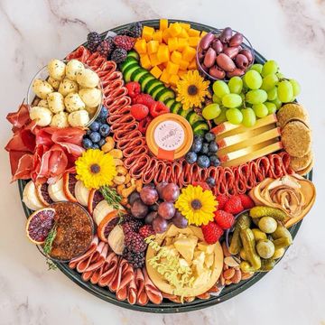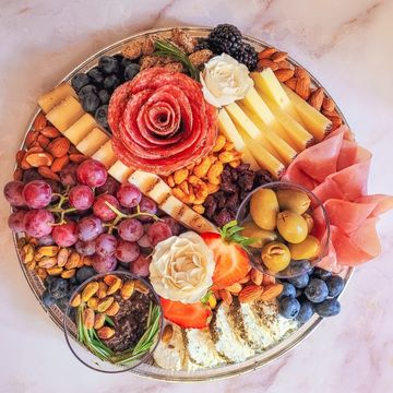 18' round tray. Serves 10 to 14 people. 5 Cheeses and 4 Meats