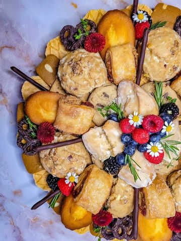 Grazing Tables are great for bringing all your guest together while enjoying a beautiful created feature. Whether it is for a birthday, wedding , bridal shower or special event, our grazing tables become a centerpiece to enjoy! Prices will vary based on size and number of guests. Please See Grazing Table Tab