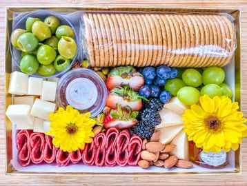 12in box. Serves 2 to 4 people. Gift Box and box of crackers included. Please allow a 5 day ordering period. 2 Cheese 2 Meat options.